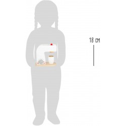 Un café s’il-vous-plaît! Cette machine à café en bois constitue un superbe accessoire pour la cuisine de jeu dans la chambre d’enfant. La manipulation simple avec les boutons rotatifs garantit le plaisir de jouer. La machine à café est une superbe idée pour les jeux de cuisine et de style de vie. Une machine à café comme celle des grands !