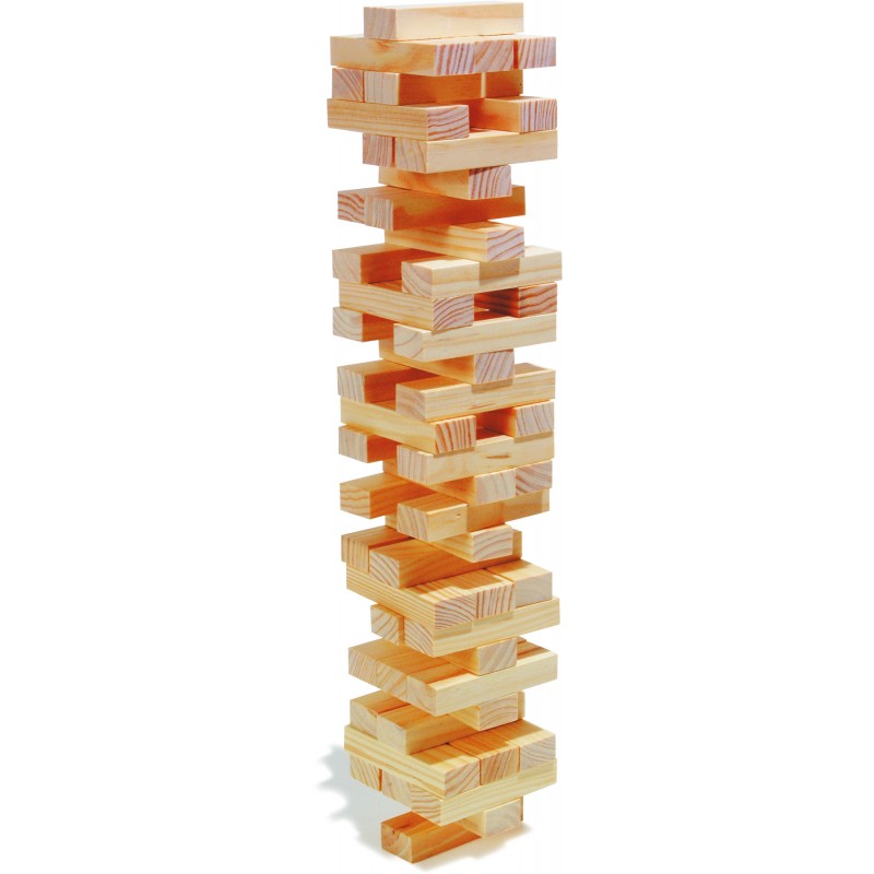 Bois naturel. Il s´agit d´ôter les bâtonnets de la tour et de les replacer en haut sans que la tour ne s´écroule. Entraîne la patience et la motricité.