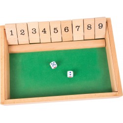 Ce jeu de dés donne vie à la maison. Dans ce jeu en bois massif de haute qualité, les joueurs doivent essayer de rabattre les plaques à chiffres à l'aide des dés. La somme des yeux peut également être décomposée. Le joueur qui rabat le plus de signes sur la planche pliante gagne la partie. Les jeunes joueurs apprennent le calcul et l'arithmétique mentale sur le côté. Un vrai classique du jeu de bois à ne pas manquer dans la gamme des jeux de société !