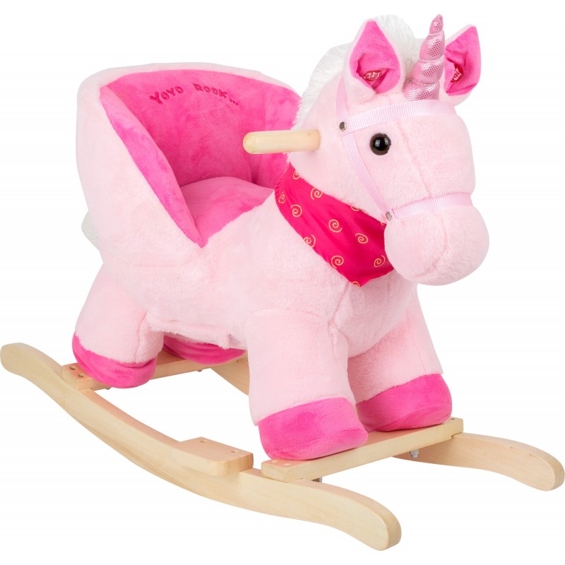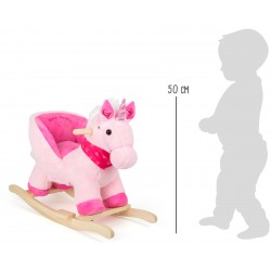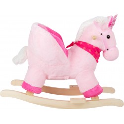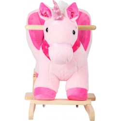 Partez à l´aventure ! Dans le siège câlin et doux de la licorne à bascule, les petits fans de licornes peuvent s´installer confortablement. Pour mettre l´animal en mouvement, les petits cavaliers s´agrippent aux poignées en bois et donnent l´élan correct. Cela entraîne la motricité et l´équilibre. Lorsqu´on appuie sur l´oreille, on entend un hennissement joyeux - très amusant pour les petits ! Piles non incluses. Qui veut aller sur l'arc-en-ciel avec nous?