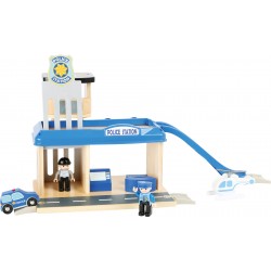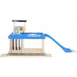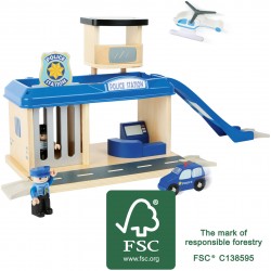 Ici, il se passe toujours quelque chose! Avec ce poste de police en bois certifié FSC® 100% de notre univers de jeu small foot world, l’action est garantie! L’association de bois naturel et d’éléments stables en plastique propose de nombreux accessoires pour les jeunes policières et policiers qui peuvent laisser libre cours à leur imagination. Le terrain d´atterrissage pour hélicoptère, la rampe des parkings et une véritable cellule de prison constituent les points forts! C’est parti pour la première intervention: descend la rampe avec la voiture de police, décolle avec l’hélicoptère et chasse les voleurs! Une poursuite endiablée à travers la chambre d’enfant débute, mais à la fin, le voleur termine toujours dans sa cellule de prison!